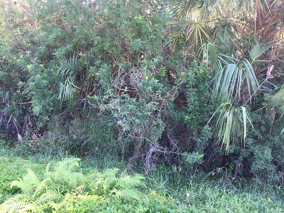 A wooded lot next to a family house on the corner of Greenly Circle and Greenly Rd. D Oden Realty sign on lot.