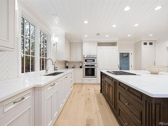 Located in Greenwood Village, this fully renovated ranch home is a private oasis settled on just over 2 acres of lush landscape. Upon entering the front door, you’ll find a chic and spacious hideaway inside the home, with a seamless flow between rooms. Marvel at a gorgeous kitchen and dining area with abundant natural light, modern finishes, sleek storage solutions, and hardwood floors throughout. A gorgeous gas range, stainless steel basin sink, marble countertops, and wet bar with herringbone tile work make the kitchen space ideal for hosting guests. Off the kitchen area, you’ll find a fully outfitted laundry room and a secondary cooking space with a double wall oven for added convenience. Three of the property’s luxurious bedrooms includes en suite bathrooms. This home exudes ambient luxury, featuring 2 fireplaces, a spacious study, a finished basement with a gym and multiple wet bars, and a thoughtful design concept. Enjoy an attached 2-car garage and stunning outdoor entertainment areas, including patios, covered porches, and an expansive deck space just steps from the primary living area with glass accordion doors for a transitional flow between indoor and outdoor living. Adding to the unique features of this home, a Casita with an oversized garage and additional storage area offers convenience and flexibility to the space. Despite the privacy of this property, residents have easy access to nearby parks, nature preserves, and walking trails.