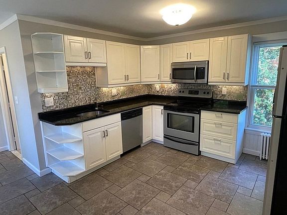 Welcome Home to 2 Grove Street in Natick. This 2 bedroom, 1 bath, 2nd floor unit has just been freshly painted throughout and features a large eat-in kitchen with custom cabinetry, granite countertops, stainless steel appliances and ceramic tile. The spacious living room with high ceiling boasts oversized windows beaming with natural light and newly refinished hardwood floors. Both bedrooms are large sized with ample closet space and a full bath with storage closet complete this incredible unit. There's a private washer/dryer in the basement for exclusive use of this unit, additional storage space in the basement & large outdoor shed, lush grounds, beautiful patio and off street parking for 2 vehicles. All of this within the highly coveted Walnut Hill Section of Natick Center with close proximity to parks, restaurants, shops, farmers market, TCAN, The Commuter Rail, and all major routes! Schedule your private showing today. Rent includes water, Sewer, Gardener, Extra Storage, Laundry Facilities