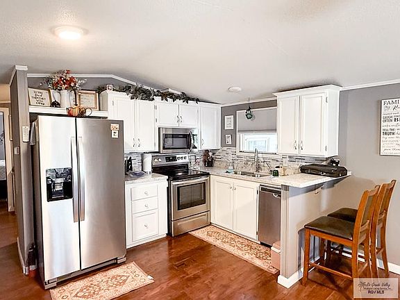 Resort-style living with water views! This charming 1 bed, 2 bath park model includes a spacious Texas Room addition for guests or extra living space, plus porches, 2 carport spaces with covered RV parking, and storage. Enjoy your very own private resaca with beautiful water views and swaying palm trees all around. Located in Winter Haven, a 55+ gated community featuring 3 pools, hot tub, tennis & pickleball courts, community center with activities, dog park, chipping range, and more, perfect as a seasonal escape or year-round retreat in Brownsville! Located just minutes from South Padre Island, shopping, and area attractions. HOA fees include water, sewer, trash, internet.