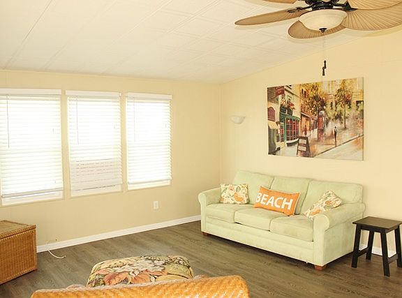 SALE PENDING ~ Total interior remodel and new double pane windows with new central air conditioner in 2017! Beautiful kitchen with white cabinets, granite-look laminate counter tops, glass tile back splash, newer stainless steel appliances by Maytag & several pantries. Open living/dining area with vaulted ceilings with sliding glass doors that lead onto the lanai. East facing lanai with vinyl windows & wall a/c unit. Master bathroom has newer vanity with dual sinks & convenient laundry closet that includes newer Maytag washer & dryer. Guest bedroom with direct access to guest bathroom. Designer vinyl plank, wood look flooring with great warranty in all rooms except for bedrooms which have Stainmaster carpet. Other updates include newer interior paint, comfort height commodes, faux wood blinds on windows, new A/C in 2017, ceiling fans & light fixtures. Extra deep carport can accommodate up to three cars. Furnished. Jamaica Bay is a very active, 55+ community (20% of our residents can be 45 – 54) with many clubs, sports and activities for the residents. Amenities include two swimming pools, three clubhouses, hot tub, sauna, fitness center, library, billiard room, shuffle board, tennis courts and pickle ball courts. HOA fee includes: site lease (no property taxes), water/sewer, trash/recycle, lawn mowing, basic cable, 24 hour attended gatehouse and access to all community amenities. By clicking Contact Agent, you will be communicating directly with the official Jamaica Bay on-site sales office allowing you access to all of our listings in the community.