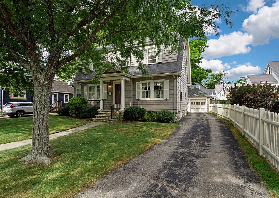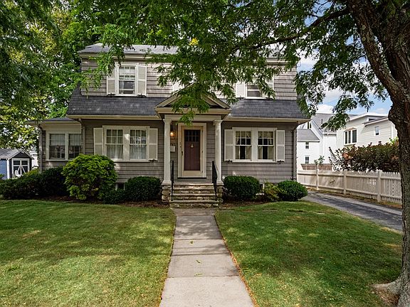 Gracious charm abounds this classic center entrance Colonial situated in a prime Central Square location. The captivating exterior is framed by mature trees, manicured landscape and details such as a covered entry and detached 2 car garage. The interior features gorgeous hardwood flooring in both the formal dining room and livingroom which features built in bookcases and a corner fireplace. the main living space also offers a side den or office which is wrapped in windows, offering lots of light. The kitchen sits to the rear of the home and looks out to the level yard. Hardwood flooring spans the second floor with a full bath and 3 bedrooms including a large master with ample closet space. The walk up attic and unfinished basement allow for expansion possibilities or added storage. Enjoy the home's close proximity to downtown Woburn, major highways and the brand new Hurld Wyman Elementary School!