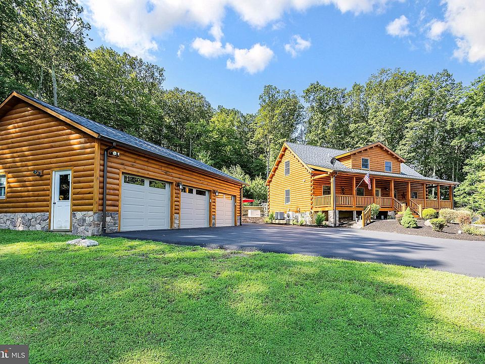 Escape to your dream woodland retreat! This stunning log home nestled on a wooded lot is the epitome of rustic luxury. W/its spacious 3 bedrooms & 2-1/2 baths, this cozy haven offers ample space for relaxation & entertainment. Step inside & be greeted by the warm embrace of an open floor plan, seamlessly blending living, dining, & kitchen areas. Natural light dances through the large wall of windows, casting a warm glow on the beautiful wooden interiors. As you move through the home, you'll be captivated by the breathtaking views from every room. A partially finished lower level w/home theater provides extra living space or an additional bedroom w/its walk out feature. Step outside to your backyard oasis w/a stunning inground pool, outdoor kitchen & hot tub in the most private of settings! The detached 3-car garage, oversized driveway & RV parking pad complete w/30 & 50 amp service is an added bonus & sure to please any automotive enthusiast! Home is equipped for generator hook up!
