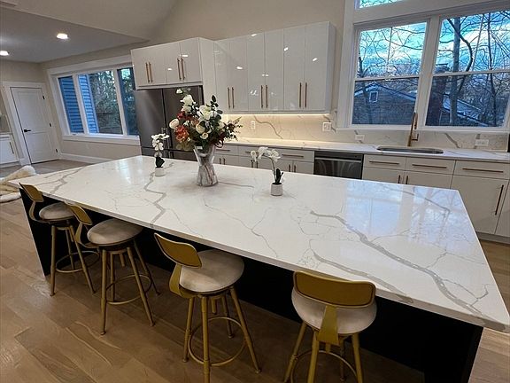 Discover luxury in this newly built Modern Colonial on a prime corner lot, boasting 6,700 sq ft of refined living space across 3 levels with an open-concept flow. Recently refinished floors add timeless elegance. First Floor Highlights: Expansive 24x24 family room with fireplace, formal dining, breakfast nook, wet bar, pantry, and large study with fireplace. Cathedral ceilings soar over a gourmet kitchen featuring high-end THOR gas range, dual BERTAZZONI refrigerators, MIELE speed oven/microwave, ZLINE custom hood, sleek white custom cabinets, quartz counters, a massive 51"x123" island. Includes a 18x20 primary bedroom suite and full bath. Second Floor: 4 oversized bedrooms, 3 full baths, walk-in closets, and convenient laundry. Natural gas FHA heating with 3 zones ensures comfort. Lower Level: Walk-out basement with kitchenette, full bath, and 24x38 four-car garage featuring 2 large finished bonus rooms. Maximum 400-amp service, EV charger, and natural gas. Unparalleled at this price.