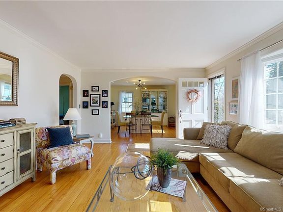 Make no mistake this is not your typical cape - this delightful, sun filled home has 3 floors of beautifully finished living space. The living and dining rooms are united by the gleaming hardwood floors and an open flow w/the space and sight lines you have been craving. A wood burning fireplace is a warm and inviting focal point of the living room that will be enjoyed year-round as the gathering spot of this lovely room. The central foyer leads to the kitchen, w/handsome full height cabinets, granite countertops, updated appliances and ceramic tile floor. Additional rooms on the main floor include a full bath and bedroom. Upstairs, the main bedroom suite has a dramatic vaulted ceiling, large alcove, full bath and two closets. Adjacent to the main bedroom this room is currently being used as a dressing room - a perfect nursery, office or craft room - sun filled w/vaulted ceiling and 2 closets. Finished walkout lower level has 2 full sized windows filling the space w/sun. This sizable area is more than a second living room w/built-in cabinets and countertops for a variety of uses. Step outside to the extensive patio area, just right for entertaining and you won't want to miss the finished sun room. Your private office, game room, guest room or party space? Professionally landscaped w/irrigation system and perennial gardens. Updates: roof, siding, windows, gutters, oil tank, chimney liner/cap, garage doors, irrigation, kitchen