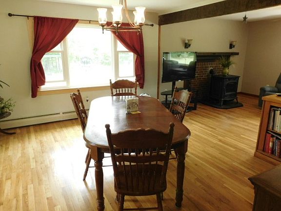 Large and spacious ranch style home on 3.8 acres of level land. Offering real hardwood flooring, a new foundation, woodstove, pellet stove, and a massive oversized shed with power that would be a perfect craft room, office, or man-cave. Sited in a quiet country area with a wrap around driveway. Front sitting porch and stamped concrete patio out back offer wonderful spaces to relax and enjoy nature.