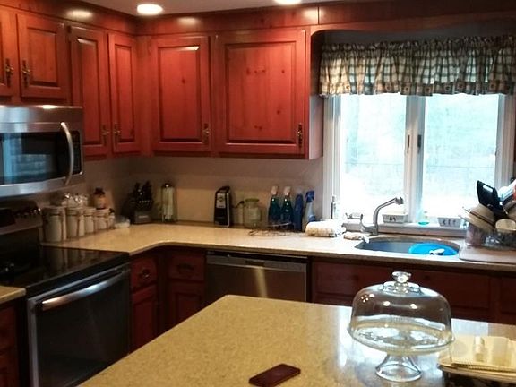 Charming Gambrel home located in Plymouth Estates with Deeded Beach Rights to Long Pond, an oasis for swimming and fishing for salmon and trout of all kinds which are stocked here on a regular basis. This home features a beautiful family room wired for home theater with custom built-in cabinets and cathedral ceilings. Dining room opens to kitchen with cherry cabinets an island and quality solid quartz counter-tops . New stainless appliances included are built in microwave, range and dishwasher. Living room has french doors, bay-window and a fireplace. Hardwood floors throughout the entire 1st and second floor of the house (excluding bathrooms). The half finished basement is a carpeted game-room/play room with another fireplace. Plenty of room for family living. Location is in great proximity to Myles Standish State Park 1 mile away, The Pine Hills, golfing, trails, easy access for commuters and more. First showings begin Saturday April 16th. See Firm remarks & showing instructions.