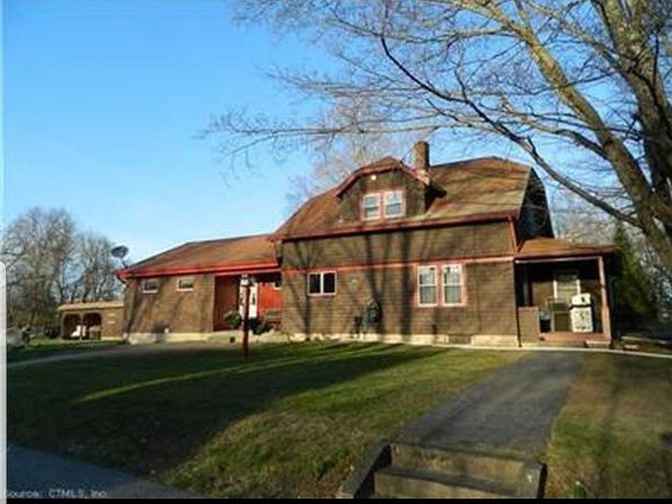Gambrel style home with 4 bedrm, 2 baths, large open living rm and family room with exposed beams, large kitchen with foyer entrance, oil heat. beautiful hardwoods floors, Storage area and 2 car garage. large shed and inground pool. Government financing will be tough. Home needs work.