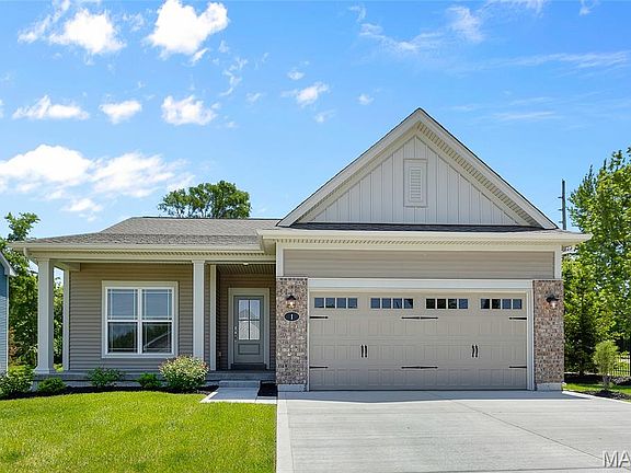 Modern Retreat meets Comfort, Convenience, and Quality Finishes. ***OFFERED AT A NEW PRICE*** This stunning premium ranch home offers effortless one level living with 2 spacious bedrooms and 2 full bathrooms plus a rough-in for a third in the lower level, perfect for expanding your living space. The open concept design features a massive great room highlighted by a fireplace that sets the mood for cozy evenings. Luxury vinyl plank flooring flows throughout, adding both style and durability. Custom kitchen with large island, quartz counters, Aristokraft 42 inch soft close wood cabinets and drawers. For the chefs, streamlined black stainless-steel appliances for all your cooking needs. Split bedroom layout allows for peace and privacy. Main floor laundry right off the primary bedroom for ease of living. Don't forget about the beautiful birch and wrought-iron staircase or the relaxing covered screened-in back porch to enjoy your morning coffee looking out into your meticulously landscaped fenced backyard. There is an oversized 2 car garage for extra storage or workshop along with a timer for the in-ground sprinkler system. Just a 1.9 mile bike ride to Frontier Park,1.2 miles to Lindenwood College, 3.5 miles to Highway 370, countless shops/restaurants, and all the charm of Saint Charles. Also, seller is offering a 1 year "Choice Plus" home warranty plan!!! It's a no-brainer, you could be living this comfortable convenient lifestyle.