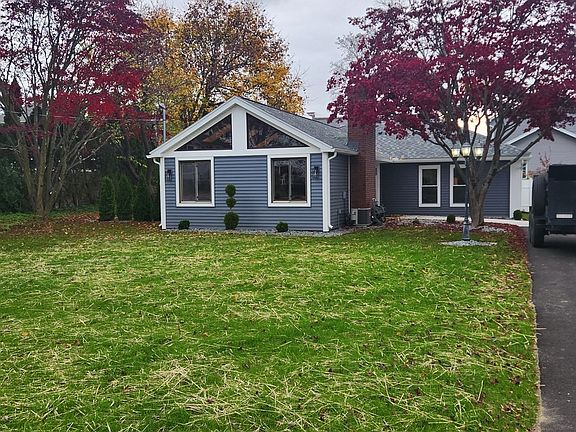 *WOW* Check out this stunning modern Contemporary Ranch on a dead-end street in the heart of Ludlow. Beautifully landscaped & fully remodeled from top to bottom, just move in & enjoy! Notice the cathedral ceiling w/ skylights wrapped in T&G pine & sawmill cut wood beams as soon as you walk in. Along with a massive stone fireplace w/timber mantel & bluestone hearth. Featuring brand new Hardwood floors & a gorgeous multi-color wood accent wall. Brand new kitchen with granite, stainless steel appliances & magnificent porcelain floors w/matching backsplash. More porcelain tile & glass mosaic throughout the beautifully designed bathroom with dual floating vanity w/high end finishes. Plenty of closet space throughout the home & every Bedroom features custom closets. Take a step outside onto the private cement patio perfect for entertaining or just rest & relaxation with a cup of coffee. ***Text listing agent for showing***