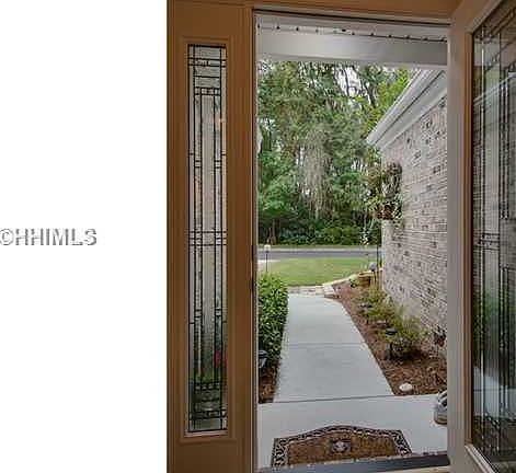 WOW! Enter thru a beautiful leaded glass door, stone foyer floor w/decorative medallion, stone floor in kitchen/baths with 5" hand scraped wood in great room. Granite w/subway tile backsplash in the kitchen. Pull down stairs for attic storage, attic fan, paver driveway extensions and a stone/paver patio w/fire pit, perfect for outdoor entertaining and toasting mellows. New HVAC May 2015! 3BR/2BA home is at the end of the street, with woods on one side providing privacy, in a gated community with low HOA fees, and is convenient to dining, shopping, schools and the charm of Old Town Bluffton. (ZT)