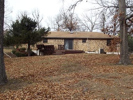#4923- Spacious 3 bdrm brick home on 39 acres only 10 miles from town on pavement. This 2400 sq ft, 3 bdrm, 2 bath home has an open floor plan with a large island dividing the kitchen and living room areas. The range, refrigerator, built in microwave,and dishwasher are new along with the central heat and air. All the rooms have that spacious and airy feeling. The living room has a metal insert in the fireplace. The full basement (2400 sq ft) has 3 rooms. Could be bedrooms with rec room or whatever you need them to be. Upstairs, outside the glass back door is a multi tiered treated deck with built in benches going down to the large yard. The whole yard has mature oak trees and a circle drive. The 39 acres is all woods but did have good fencing with a well maintained county road on the back side. You could hunt off your own deck and eat from your good garden. All for $159,900 with last year's taxes only $529.