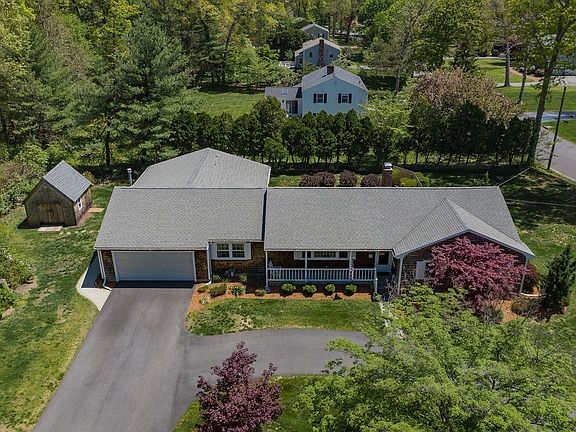 Welcome to 1 Heather Way, a rarely available Executive Ranch with a true in-law suite in the heart of Barrington. Situated on a beautiful three quarter acre lot, this pristine home is bordered easterly by Hampden Meadows Greenbelt, town conservation land with walking trails. The nearly 2,400 square foot property features three bedrooms in the original wing including a primary bedroom and bath along with a formal living room and spacious dining room decorated with hardwood floors and gorgeous picture windows overlooking the farmer's porch. The updated kitchen with stone counters is adjacent to the family room with its lovely wood-burning brick fireplace leading through sliders to a private backyard patio. The more recent in-law apartment addition, complete with its own separate entrance and outdoor space includes an additional fourth bedroom, living area & full kitchen with cathedral ceilings, full bath, and ample closet space.