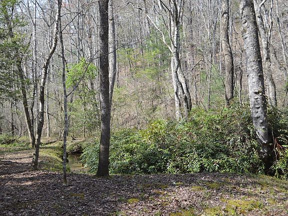 Tranquil Oasis. This generous 3.96 Acres of woodland features a lively Branch that runs the entire length of the property from the top to the bottom, where it joins together in the corner with a gently flowing creek that runs through the bottom. The property's branch, creek, and access road serve as the actual property border. So you will always know where your property line is. A slew of beautiful and valuable Holly trees are along the creek and branch. These slow-growing Holy Trees vary in size from small to mature trees that serve as a year-round canopy and add to the property's Tranquility. These evergreen trees symbolize protection, good luck, and the ancient belief in their power to ward off evil spirits. It's a wood prized for making elegant furniture and intricate carvings, and its presence is a subtle nod to the festive spirit of Christmas. The land lies level and is gently sloping from the property's top to the bottom, a rarity in the mountains. It also has electricity and high-speed fiber optic internet, passing through the sub-division. This property is an invitation to build a home and peaceful retreat that somebody will cherish for generations. Light Restrictions awaits. Build your dream home that includes outbuilding/shed. Bring your family to enjoy water.
