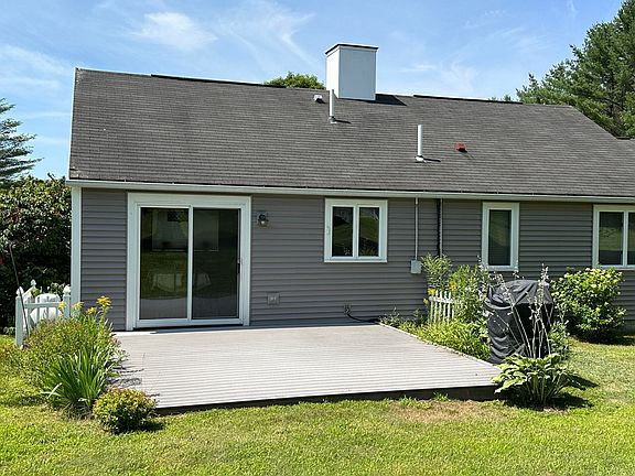 This end unit 2 bedroom condo is located in a sought after condominium neighborhood complex surrounded by well landscaped open space, yet conveniently located just minutes from downtown Auburn and shopping malls, 2 hospitals, golf courses, and the Maine Turnpike. It provides the convenience of one floor living (including a washer and dryer) and walks out to a large no maintenance deck through the sliding doors from the dining area. The deck could possibly become a screened porch or even a sunroom. The cathedral ceiling in the living and dining areas creates an open, airy, spacious feeling for relaxing or entertaining. Tastefully decorated with beautiful wood floors and kitchen cupboards, and tile floors in the kitchen, bathroom and front entryway, this end unit condo is bright and move-in ready with all appliances included and an attached garage. As a bonus, it is one of the few condos in this complex with central air conditioning.