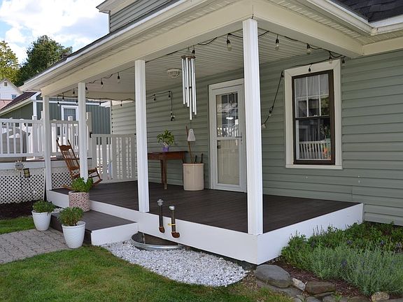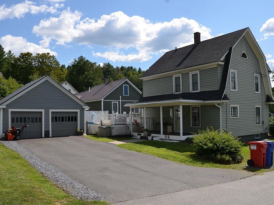 Welcome home to a property that offers comfort, practicality, and thoughtful improvements throughout! Three generous bedrooms and a full bath provide ample space, while a heated sunroom extends the living area and opens to the side deck and pool for easy indoor-outdoor enjoyment. A formal dining room sits just off the cozy eat-in kitchen, complete with updated oak cabinets and timeless hardwood flooring that carries throughout the home. The full, dry basement includes additional cold storage and a new electric panel for peace of mind. Recent updates include a completely rebuilt front porch with new joists, decking, steps, and sidewalk, as well as fully renewed two-car garage with new cement siding, new metal roof, and new perimeter drainage—revamped and ready for years of service. Outside, the lovely lot features an above-ground pool and raised garden beds, creating a space that is as inviting as it is functional. Diligently maintained and perfectly situated, this home offers a desirable blend of privacy and in-town convenience.