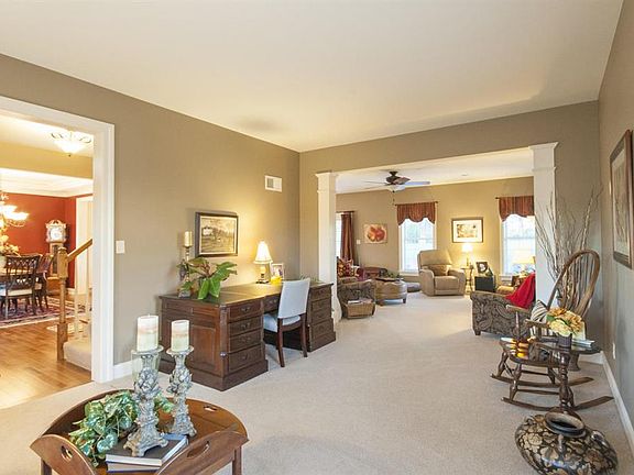Stunning home w/all the bells & whistles, 5BR, 2.5 Baths, tray ceiling in Master BR, DR w/rope lighting in tray ceiling, ceiling fans throughout, 6'' basebd, granite ctr tops in kitchen & pwdr rm w/vessel sink, walk-in pantry, 1st floor laundry, wood burning fireplace, geothermal HVAC, rev. osmosis water sys, water softener, Superior Walls, Sec system, dog fence, prof. landscaped, beautiful pond with waterfall, oversize 2-car garage & much more.