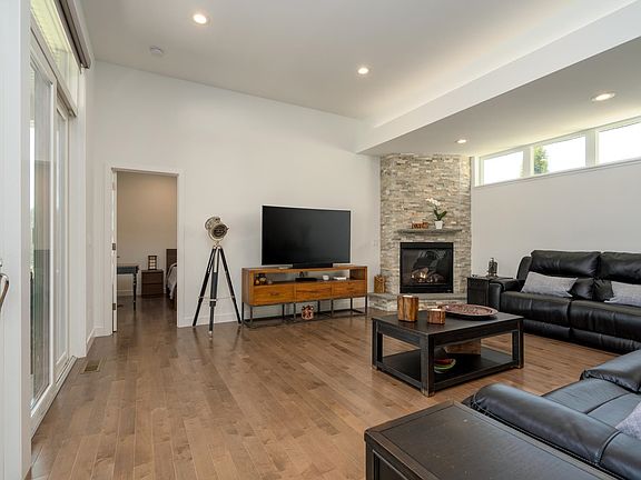 This modern/contemporary, single story home offers an abundance of stone and glass finishes. Inspired by Frank Lloyd Wright’s Prairie style architecture, this home has a unique style, boasting incredible exterior stone work and clean lines. Enter through the large French doors and be greeted by a welcoming open foyer. The open concept is evident in the functional kitchen, which overlooks the dining and living area for ease of entertaining. Unique ambient lighting travels through the entire home. The 11-ft. ceilings give the home a wide open feel and provides plenty of natural light through the patio sliders and transom windows. Enjoy those cool New England evenings in front of the crackling gas fireplace wrapped in stone. Who wouldn’t want a dedicated, private bedroom suite with high windows for your guests? The Primary suite, down the attractive hallway, provides a private bedroom, fully equipped with custom walk-thru closet. The Primary bath offers sleek and streamline finishes, including a luxurious hydro-therapy tub, dual-sink vanity, spa-like glass door rain shower, and separate toilet room with bidet. Two more bedrooms round out this spectacular home and provide an extra-large shared bathroom. Expansive 2 car attached garage opens to the tiled mudroom and laundry area. Full size, unfinished basement offers the option of future finished living area. Not one, but TWO Rinnai tankless water heaters. Exceptional outdoor patio for entertaining. Schedule a visit today!
