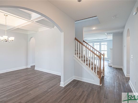 Introducing the most sought-after floor plan by Faircloth Homes, 4000-1 on the corner lot. This stunning home boasts a grand dining room with an elegant coffered ceiling, a private study, and a spacious great room with a cozy fireplace. With lvp floors in the foyer, dining room, great room, and kitchen, this home exudes luxury.The main level features an in-law or guest suite that connects to a hall bath. The fully-equipped kitchen includes an oversized island, granite countertops, a convenient work station, a walk-in pantry, a microwave, double oven, and a ceramic cooktop.Upstairs, you'll find an expansive open bonus/theater room and four additional bedrooms, including a large deluxe master suite with a relaxing sitting area. The master bathroom is appointed with lvt floors, large shower, a garden tub, a walk-in closet, and separate vanities.2 zone Irrigation system and gutters. The seller is offering to pay $2000 in closing costs with the use of the preferred lender.