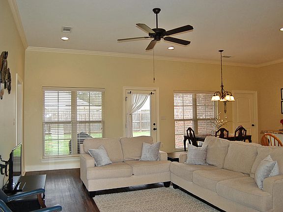 A home that checks all the boxes! Open living and dining concept, split plan, fenced backyard, and move-in ready in exceptional school district. Neat, bright, and tidy in The Meadows at Pecan Lakes. Wood laminate floors in living, dining, and kitchen. New carpet in the master bedroom. Wonderfully maintained!