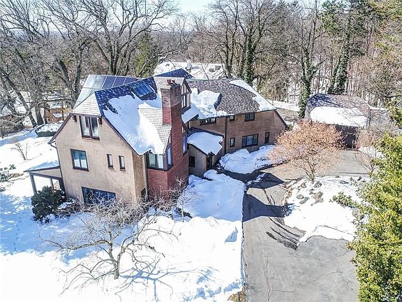 Stunning Highland Heights Tudor on 1.6 acres overlooking the Bristol Hills. 4550 square feet of spaciousness with 4 bedrooms and 4.5 baths. Red oak hardwood floors in kitchen and formal dining room; oak floors throughout the second floor. Gas burning fireplace graces the elegant living room with expansive views. Master bedroom includes sitting room with fireplace. Additional bedroom on third floor with full bath. Spacious 2 car garage with hookup for electric car. Property boasts an expansive outdoor patio with landscaped views. Exterior of the home features stucco and slate roof, well maintained. Updated kitchen with pantry and additional sink, as well as ample cabinetry. Tennis courts for your enjoyment. Zone heating, Central air, steam heat, hot water baseboard heat and solar energy is incorporated into heating and cooling systems making for reasonably low utility costs.