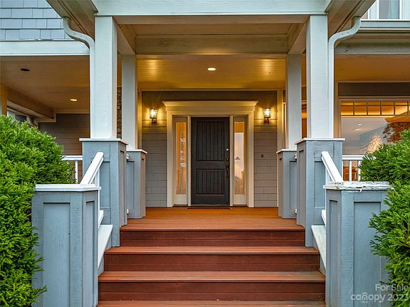 This stunning home is located off of Town Mountain Road, a 5-minute drive from the center of Asheville. To take advantage of the extraordinary western views is a covered front porch almost the length of the house. The living room has a stone fireplace open to the dining area. A well-appointed kitchen has a lot of space, including an island, many cabinets, two sinks, and two pantries. The primary bedroom suite and bathroom are spacious with a jetted tub, shower stall, and a toilet closet. Also on this level is a TV/library, screened porch, and an open deck. The top floor has a big family room with a fireplace, wet bar, 2 guest suites, and an office, with an elevator servicing all three floors. The lower level includes a billiard table, wet bar, and fireplace. An adjoining room is for an exercise room, with a sauna There is also an A/C storage room and a full bath with a steam room. In the backyard is a terraced rock garden planted with perennials, flowering bushes, and trees Galore.
