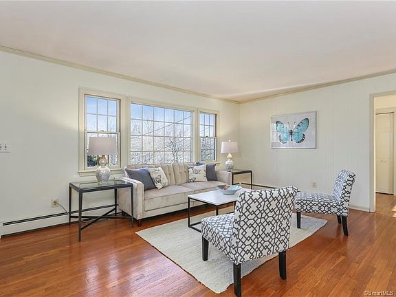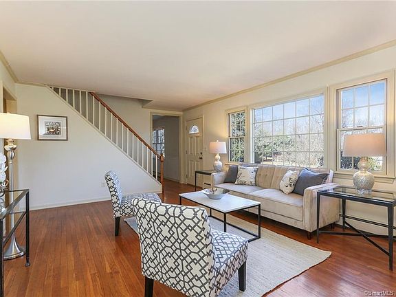 Schedule a VIRTUAL VISIT from the comfort of your own home. Welcome to this charming cape sited on a one-acre corner lot featuring mature specimen trees and a level backyard. Located on a quiet cul-de-sac street on the north side of Ridgefield, this home is close to shopping (Danbury Mall, Whole Foods), restaurants and main commuting routes north or south. This light and bright house is an ideal starter home, downsize option or condo alternative. Meticulously maintained by the owners, this home offers plenty of space for both day-to-day living and special occasions with family and friends. The remodeled eat-in kitchen overlooks the back yard and features granite counters, creamy white cabinets and stainless-steel appliances. Enjoy grilling and dining al-fresco on the large deck on beautiful summer evenings as Fido plays in the partially fenced yard. Enjoy relaxing after a long day of work in your spacious Vermont-like FR with exposed beams, brick in-lay & wood stove (helps to reduce heating costs). On holiday occasions enjoy hosting a meal in the trendy formal DR and entertaining in the formal LR. A main level bdrm and full bath for added convenience completes the ML. The second floor includes the master bedroom with WIC, an additional bedroom and the second full bath. The finished LL serves as an in-home office, rec/play room or exercise space. Anderson windows throughout, central AC and well maintained mechanicals. Make This Charming Home Your Own!
