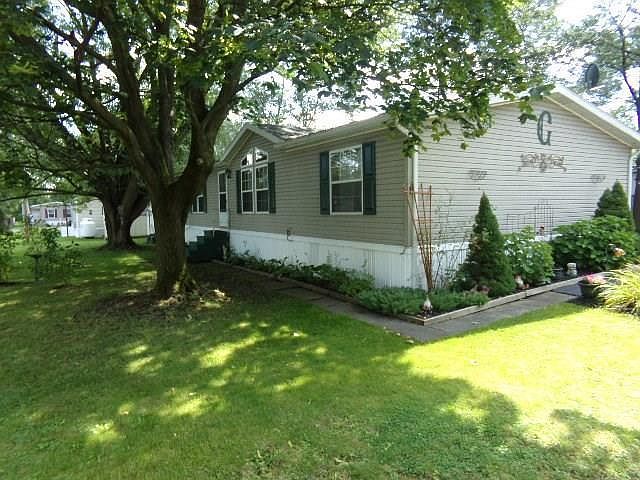 Well maintained double wide with nicely treed and landscaped yard. Kitchen has breakfast area, formal dining room, large living room, master suite, sky lights, tile counter tops, top of the line appliances (newer) roof 4 years old.
