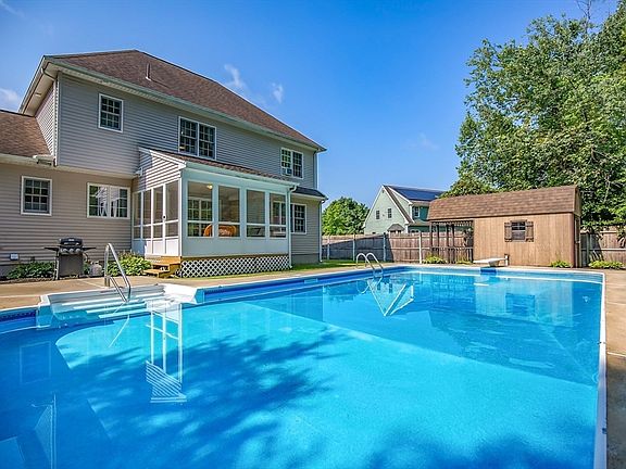 OPEN HOUSE IS CANCELLED! This is seller motivation. Crazy price on this spectacular home. It's BEAUTIFUL, it's classy, it's spacious, it's The One and you'll know it the minute you walk through the door. The vaulted foyer welcomes you into an open floor plan perfect for entertaining. A beautiful three-season sunroom overlooks the inground pool and back yard that create a serene and private retreat. The master bedroom has ensuite bath w/laundry and his/hers closets. (laundry on the 1st flr as well!) Finished basement, Newer state of the art mechanicals. The list goes ON! Located in a lovely neighborhood on a no-exit street, this home offers privacy and tranquility while being just minutes from the Mass Pike and every convenience. Additionally, solar panels provide significant savings on your electric bill! (note that the kitchen cabinets are actually a dark blue). Book your showing today for your chance to view this beautiful home!