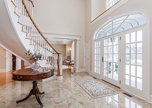 Stunning 12 room Custom Built French Colonial, spectacularly sited on 2.97 acres in coveted location. Enter through a circular drive w/stone walls and blue stone walkways,while additional drive provides privacy to a 5 car heated garage. Carefully designed and constructed to inc.,unsurpassed custom carpentry,millwork and high end amenities throughout.The state of the art Vartanian kitchen boasts top of the line appliances,exquisite butlers pantry,dining area,wet bar plus multiple work surfaces. A floating curved staircase graces the center and the open floor plan allows for ease of entertaining. The gracious master suite has sitting area,gas fireplace,his and her closets plus a bath that is to die for, while other bedrooms are also en Suite. The gym with cedar closet could also be used as a 5th bedroom. Mechanicals will not disappoint either,inc. a whole house generator,22 zone irrigation system,stainless steel H/W tank (lifetime warranty),fire suppression system plus 5 zone heating/AC.