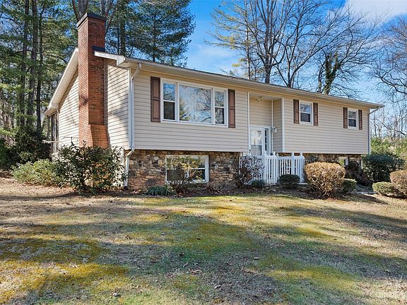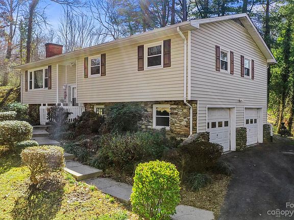 Move-in ready in a fantastic Asheville location! Home sits just outside the city limits (no city taxes) in a country-like setting. This corner lot boasts a lot of privacy on it's .5 acre lot. Entering the home, you'll notice newly installed prefinished hardwood floors throughout the main level with spacious rooms. Living room is ample size which opens to the dining room and then to the kitchen. Kitchen affords wood floors and custom higher grade wood cabinetry. Bedrooms and bathrooms are all great size. Bathrooms have been remodeled as well. In the basement, there is plenty of space for crafts, living area, etc. Gorgeous stone fireplace in the basement living room. Laundry room and half bathroom in the basement add extra convenience. 2 car oversized garage. The yard offers tons of room to play as well as a couple creeks going through the property which adds a serene feeling. Spacious screened in back porch as well to complete the home! Free home warranty!