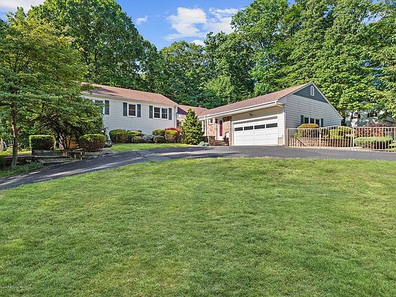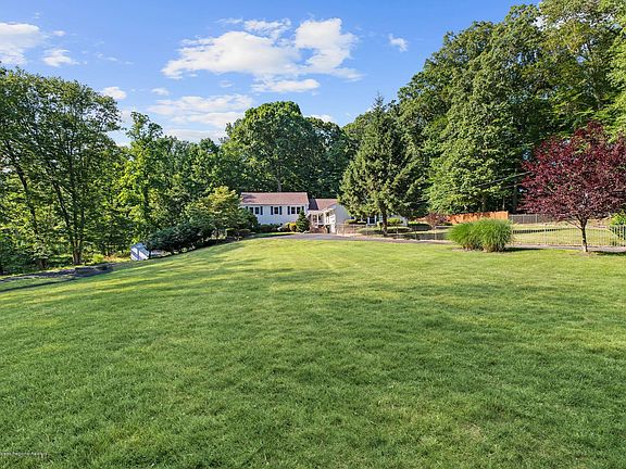 Nestled in rich, lush landscape, this beautiful home provides all the best the desirable town of Colts Neck has to offer. Privacy and tranquility meets elegance and charm with over 3.5 acres of private land and approximately 3500 square feet of generous living space. This home offers a smooth floor plan featuring hardwood floors, 2 fireplaces, and a sunroom overlooking a picturesque landscape and outdoor entertainment area. The master bedroom suite boasts vaulted ceilings, radiant floor heating, fireplace, & newly renovated en-suite bathroom and Velox skylights. The lower level provides a separate entryway to what could be considered a mother-daughter possibility. This level offers a gracious amount of living space, including a family room or playroom, two bedrooms, full
