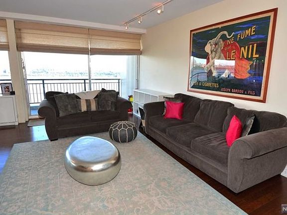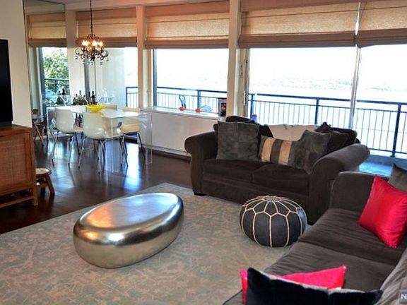 Million $ unobstructed Hudson River and GW Bridge views facing east, with 180 degree vistas north and south. You'll never tire of watching the sunrise, the NYC buildings change color as the sun sets and the full moon rising over the river. Entertain in style, enjoy morning coffee or afternoon drinks on the large terrace. Desirable corner downsplit bi-level with all rooms facing east on single living level. Wood floors through out this spacious 2 BR, one full spa-like bathroom with huge closets for plenty of storage. Modern upgraded kitchen, lg LR and DR in which to gather with family and friends. Horizon House offers 32 acres of park like property with walking paths, pools, tennis, playgrounds, fitness rooms, BBQ area, bagel shop deli, barber shop and more. $1681.19 maint $227.50 cap assessment, $72 deck pkg, cable TV internet $48.90 per month. Total = $2029.59 per mo. Subject to board approval: Min 25% down, 4-to-1 Income-to-Debt Ratio. Min income required $97, 440 if paying cash.