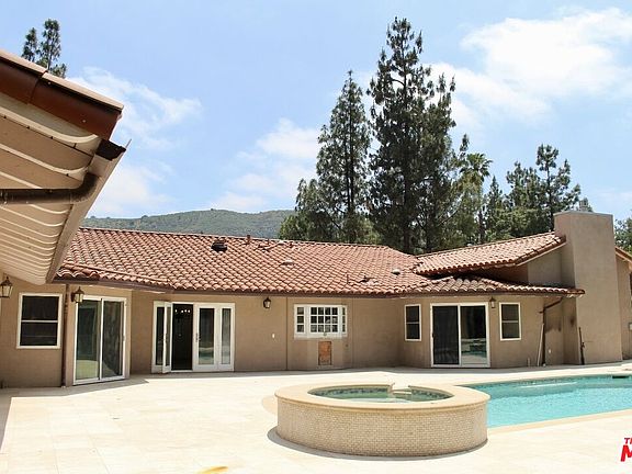 Truly a rare offering! First time on the market in over 3 decades! Situated behind the guard gates of the prestigious Bell Canyon equestrian community sits this centrally located unique one-story ranch home. Across the street from the community center, tennis courts, gym and walking distance to the historical Cliff May designed equestrian center, parks, and trails, this home boasts a rare one acre flat and mostly usable lot perfect for adding a stable, guest house, each with their own separate street entrances. This custom home offers over 4900 square feet, with 5 bedrooms, 5.5 bathrooms, 4 fireplaces, gourmet kitchen, great room, living room, family room, bonus office room, pool and spa tub, and 3 car garage. Upon entering the sprawling 1 story you are greeted by a spacious great room with high ceilings and fireplace. An additional sunken living room with fireplace and built in book shelves and bar area as well as an adjoining dining room offer a perfect entertaining space, with both spaces opening to the outdoor patio, pool and grounds area. The dining room with French doors also opens to the pool area and to the gourmet kitchen featuring granite counters, center island, and Sub Zero and Wolf appliances. The eat-in kitchen dining area opens to the more casual family room with fireplace creating a cozy but open feeling. Near the kitchen with garage access is a bonus room/bedroom with adjoining office and closet. A full bath is located near the kitchen entrance and can also be accessed by the office/bonus room. The primary retreat features an expansive bedroom with high ceilings, a fireplace with sitting area, a large walk-in closet and a sliding glass door closet, granite bathroom with spa tub and separate shower. There is also a bonus room for a possible office, yoga studio, or possible nursery area. Two of the secondary bedrooms have been converted into one that was used as second master suite with 2 sliding door closets and a connecting 3/4 bathroom. The additional bedrooms are light and bright and one opens to the pool area. There are 2 laundry areas and hook ups located at each side of the house. The renovated sparkling pool, spa and patio are the center focal point of this sprawling 1 story home and open up to the large flat grounds and creek in the backyard. Bring your imagination and create your unique custom space!