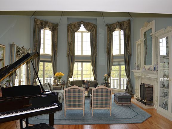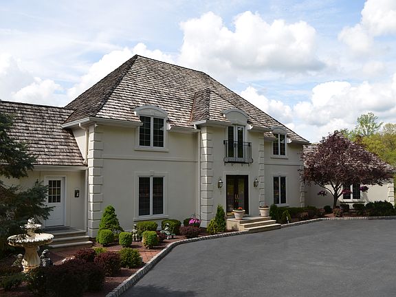 Overlooking Roxiticus Valley this offering draws its inspiration from the grand Chateaus of France's Loire Valley. Home includes three levels, including a walk-out finished lower level. This spaciousness readily accommodates multi-generational living. Cedar-shake roof, stucco siding, turrets and arched detailing echo the home's pedigree. The Interior design comprises high ceilings, tall double casement windows, classic millwork, hardwood floors, French doors, 3 fireplaces. Cherry library includes wet bar, conservatory with bowed wall of windows, bright kitchen updated in 2015. Lower level hosts game room, wet bar. 2nd full kitchen and 2nd family room, the latter opening to a columned gallery, immense brick patio, lush landscaping and distant views. . Far Hills Mailing address.