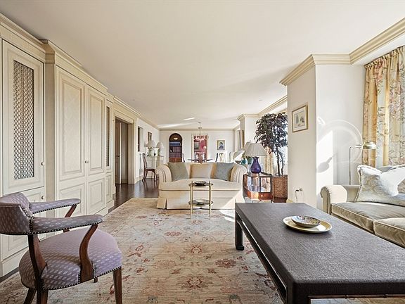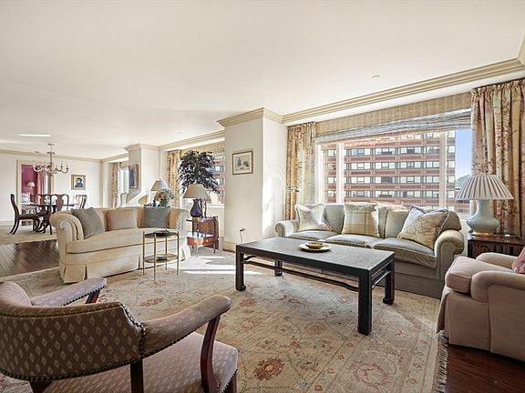 Elegant, full service living in the heart of Back Bay at Trinity Place. This two bedroom two and half bath residences features open living and dining with three large south facing windows, hardwood floors, crown molding. Generous size kitchen with ample cabinet space, an adjacent pantry storage and laundry. A large primary suite with walk in closet, en suite bath with separate shower, soaking tub, double sinks, linen closet. Second bedroom suite offers a builtin home office desk, double closets, and en suite bath, additional amenities include fitness center with sauna & massage room, private storage, elevator, concierge, and Two valet garage parking spaces included.