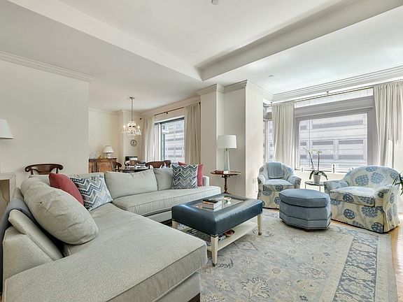 Big 2-bedroom/2-bath at Trinity Place! Oversized living space with dining and sitting alcoves and hardwood flooring are sunlit by south facing windows. Sleek white chef's kitchen is fully applianced and offers lots of cabinet storage both above and below with adjacent laundry and full bath. Both bedrooms are quite generous, each with double closets and lovely light. Primary bedroom includes a large en-suite bath. Excellent storage throughout. Building amenities include Garage Valet and lovely common areas with 24/7 concierge and gym, spa/massage room. Delightful Back Bay/Copley Square location with world class dining, shopping, nightlife and culture at your doorstep and around every corner. Public transit and bike lanes are right outside with lots of commuter options both in and out of downtown and Logan Airport. This is definitely your spot to enjoy city living at its finest!