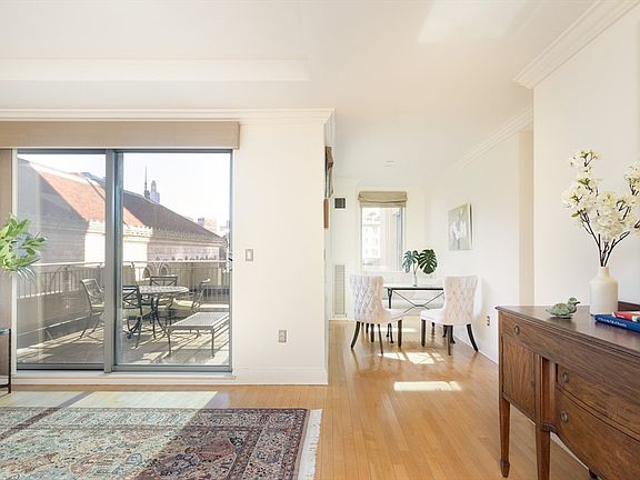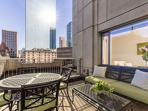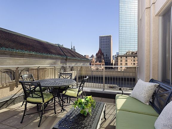 Elegant sun-filled, corner 2 bedroom residence at Trinity Place showcases a beautiful private walk-out terrace, oversized windows, and fantastic wide open layout. The brand new kitchen features stunning neutral countertops, stainless steel appliances, and exquisite backsplash. A separate dining area offers a cozy nook for entertaining. Enjoy spectacular views of iconic Copley Square, Trinity Church, and the John Hancock Building from the inviting living room and step through sliding glass doors opening to the spacious private terrace. Well proportioned bedrooms include customized closets and built-ins, complemented by soothing neutral spa-like bathrooms. Beautiful hardwood floors throughout. Trinity Place offers the highest level of bespoke services including 24/7 concierge, fitness center, doorman, convenient in-home Sorellina dining service. 1 valet-only parking space and 1 extra deeded storage space complete this lovely home.