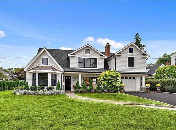 Modern farmhouse style 98% NEW construction 2019.White Hardie siding w Azec trim,Bluestone front porch,400 series Anderson windows, GAF 50 yr roof, spray foam insulation,2 Zone Hydro Air Heat/AC, radiant heat, Nest Thermo, Ring doorbell & security cameras. Designed to suit today's casual lifestyle w an open floor plan, featuring a sleek stainless open stairway, hardwood flrs, recessed lights, family rm w fireplace, kitchen w walk-in pantry, S/S Bosch appliances, white shaker cabinetry, quartz countertops & an oversized island w seating. Dining rm, bedroom, full bath, & mudroom complete 1st level. The 2nd level, Mst Bedroom is the ultimate retreat w an opulent ensuite bathroom adorned w gold fixtures, dual sinks, frameless glass shower, radiant heated fl, a luxurious walk-in closet. There are 2 add'l bedrooms& full bath. For added convenience, a Laundry rm w sliding barn doors is on the 2nd level. Located in Eastchester on a large level corner lot. Metro-North Manhattan commute 30 Min.