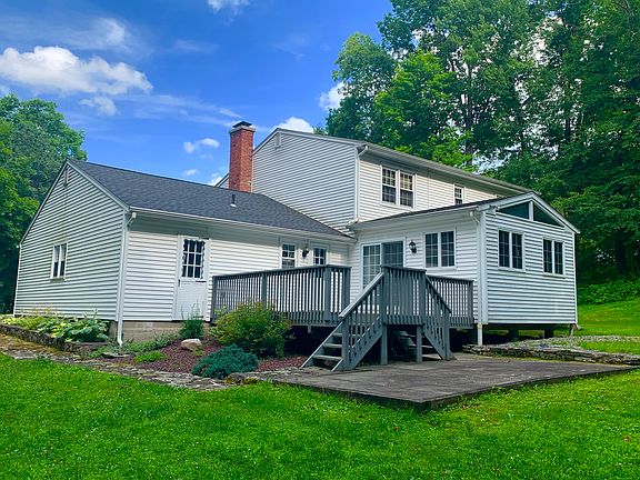 Beautiful 4 bedroom 2.5 bath Colonial in desirable Sleepy Hollow Estates set on over an acre of property with circular driveway. Updated Eat-In-Kitchen with Corian counters, an abundance of cabinet space, ceramic tile floors, spacious dining area and backsplash tile with mosaic glass border.Gleaming hardwood floors throughout, stunning Barnwood style casual and rustic family room complete with fireplace/stove, built ins, crown moldings and angular doorways. Formal spacious living and dining rooms with open floor plan perfect for entertaining family and friends. Enjoy the sun drenched main level bonus room with exposed beams, vaulted ceilings which hosts walkout to back deck, patio and sprawling private yard. Large main level laundry room with walkout, updated half bath with pedestal sink and 2 car oversized garage. Upper level boasts 4 bedrooms including a large master complete with master bath, three additional guest rooms all ideal with great closet space and another full bath. Huge lower level is great for storage and can be finished in the future. Brand new Peerless Furnace, attic for extra storage, solid wood doors, wainscoting, newer thermopane windows and additional insulation.Easy care maintenance free vinyl siding & new roof. Great commute location with original owners who have taken exceptional care and love into this home.