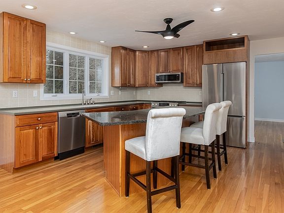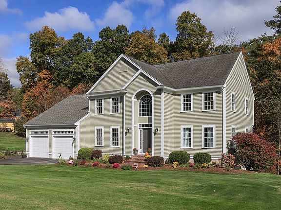 Stunning Colonial home boasting 3,300+ sq ft on 2 floors offering 4 bedrooms, 3 full baths, and a 2 car garage on a lovely, spacious lot abutting conservation land in a peaceful cul-de-sac setting. Enter into the two story foyer with an office on your left, a front living room and dining room to your immediate right. Well appointed kitchen with easy access to dining room and open view into the vaulted ceiling fireplaced family room. Slider leading to back deck off of the kitchen overlooking the private backyard. Primary suite is spacious with updated full bath w/ double sink vanity, walk-in tiled shower, & jac tub. Three more bedrooms all generously sized offering access to full bath w/ double sink vanity. Convenient second floor laundry. The walk-out basement boasting 12' ceilings w/ slider continuing out to patio offers 1,600 sq/ft of potential expansion space! Walking trail directly accessible from neighborhood. Comprehensive list of owners' improvements available under paperclip