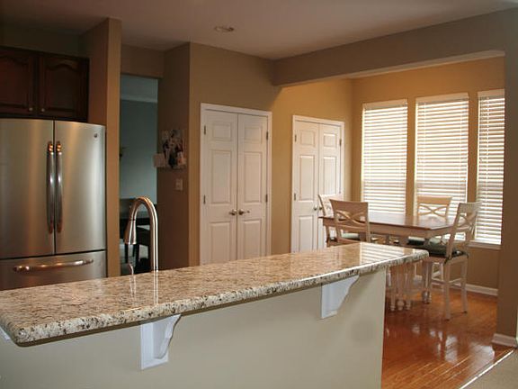 Beautiful 4 bedroom 2.5 bath home in desirable Knob Hill. Kitchen features upgraded 42'' cabinets with granite counter tops, stainless steel appliances, hardwood floors and two pantries. 2 story family room with recessed lighting and gas fireplace. 2 story foyer with wood floors. LR/DR combo for ease of entertaining. The LR/DR boasts beautiful crown molding. Second floor bridge overlooks dramatic family room. Large master bedroom with walk in closet. Master bath features double sink, oversized tub, and separate shower stall. Backyard with paver patio, and private tree line. Community features pool, tennis, basketball, and onsight restaurant.