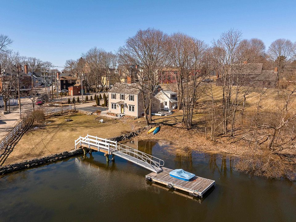 Waterfront property w/ own private 3-year old DOCK; not shared! Antique Colonial is a single, detached condo (one of only two units in the Association) & is the perfect blend of historic charm and modern-day finishes. This could be YOURS; just bring your boat! Access to Piscataqua River & dock at your favorite restaurant or continue on to explore coastline & ocean! Custom chef's kitchen with a professional Thermador range and Sub-Zero fridge also features open concept shelving, ship lapped walls and classic, full wall(s), with built in storage to enhance the functionality. Beautiful wide pine floors flow throughout both levels. Enjoy water views of North Mill Pond from your living room and master bedroom. Fireplaced DR enhanced with exposed wooden ceiling beams. Two spacious, fireplaced bedrooms are located on the second floor with a Jack and Jill, custom bathroom including oversized, walk-in shower. Looking for extra space? Meander into your private backyard and enter the finished, expansive, 1 & 1/2 story outbuilding, equipped with power and a lofted area. This space would make a great art/music studio, office or workout room. Spring will be full of surprises as the gardens start to bloom. Bring your picnic basket and boat shoes; this summer is going to be a dream! Did we mention it's only a 5 minute stroll to downtown Portsmouth's great restaurants, entertainment and shopping? Easy access to the highway for quick day trips to Boston, White Mountains or Maine Coast.