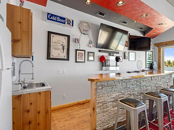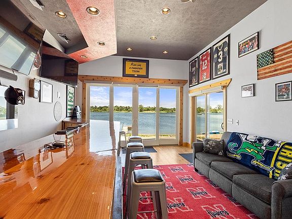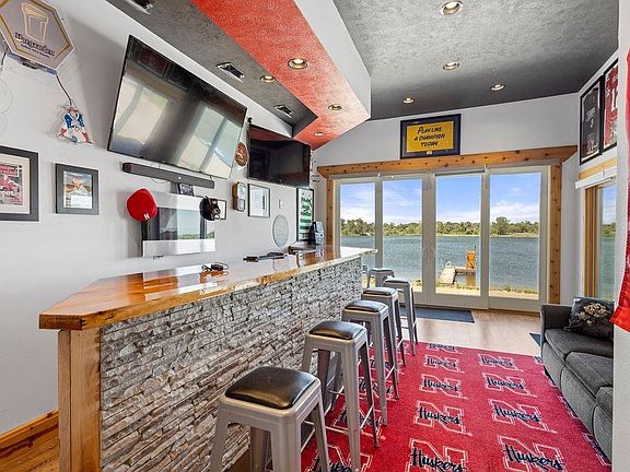 THIS FULLY REMODELED LAKE HOUSE IS THE ONE YOU'VE BEEN WAITING FOR! ORIGINALLY A BEHLEN BUILDING, THE HOME WAS INSULATED AND WRAPPED WITH VINYL SIDING IN 2017. WITH 2 BED, 2.5 BATH AND A 32'X11' SUNROOM THERE IS PLENTY OF ROOM FOR COMFORT. 2 CAR DETACHED GARAGE, SHED, AS WELL AS AN ATTATCHED OVERSIZED SINGLE CAR GARGE FOR ADDED CONVIENCE AND STORAGE. ENJOY OUTDOOR LIVING WITH A LARGE COVERED PATIO COMPLETE WITH HOT TUB AND PATIO FURNITURE, ALL TO STAY. FULLY EQUIPPED SPORTS BAR, INCLUDING 1/2 BATH THAT OFFERS STUNNING VIEWS OF THE LAKE THROUGH THE 8X8 DOUBLE GLASS. OFF OF THE PATIO THAT INCLUDES AN OUTDOOR SHOWER THERE IS AMPLE BEACH PERFECT FOR VOLLEYBALL AND HORSESHOES. DOCK/SLIDE INCLUDED. **LEASE LOT $4,000/YR