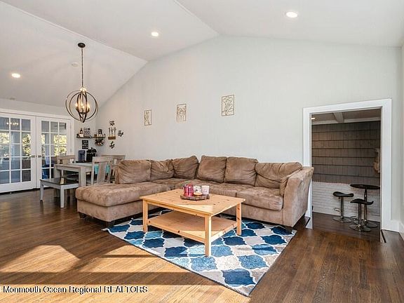 Wonderful expanded ranch with a full basement and so much more on a large lot in a family friendly neighborhood in Neptune Township. This 3 bedroom home offers hardwood floors, open concept living with vaulted ceilings, a newer kitchen with white cabinets, stone counters, stainless steel appliances and tile back splash, separate dining room, living room, sunken family room with fireplace, a gorgeous new bathroom, bonus sun room that offers extra square footage and living space, recess lighting, mature landscaping. All this with a full basement with a finished bonus room, half bathroom, utility or workshop area, and plenty of room for extra storage