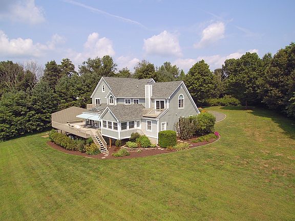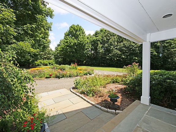 Exquisite custom built colonial on 2.83 pastoral acres in sought after "Topstone Green", a private cul de sac enclave in most desirable West Redding location set back off scenic road. Impressive from first glance with Belgian block lined circular drive; charming front porch; expansive rear deck w/awning; flowering gardens; lush rolling lawn; and rear meadow bordered by Redding Land Trust conservancy for idyllic privacy. Light, bright and open floor plan including two story entry foyer open to the most inviting great room with double rows of skylights plus full wall of windows French doors to the spacious deck and private backyard; sunny breakfast area with adjacent full season sun room; plus chef's kitchen with custom cabinetry and granite topped island with bar seating. The main level also features the elegant dining room with built-in window seat and handsome library with custom built-in cherry bookshelves/cabinetry, moldings and fireplace surround. With adjoining full bath, this private office also doubles as an optional main level guest or in-law suite. The second level offers the luxurious master bedroom suite with private balcony, walk-in closet, and sophisticated bath with double vanities, jetted tub, and separate shower; plus 3 additional bedrooms including expansive suite with triple walk-in closet. A convenient back stairway leads to the mudroom, laundry and 3 car attached garage; plus additional car storage for collectors in lower level with "drive in" entry. Extensive updates include: just completed exterior painting; generator; new roof (2012); and HVAC replacement. Perfection!