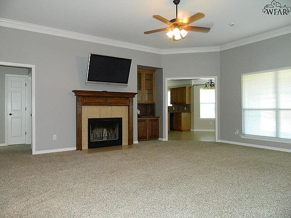 This property was the builders model home in 2010 that includes extras. Well maintained 4 bedroom, 2 bathroom home situated on a large corner cul-de-sac lot covered w/ sprinklers. Nice entrance w/ coat closet. Spacious living room featuring tall ceilings w/ crown molding & fireplace. Stunning kitchen w/ attractive cabinets, center island, granite counter tops, stainless appls that remain & pantry. Large isolated master bedroom. 3 good size guest bedrooms. Separate utility room w/ sink. Backyard faces East.