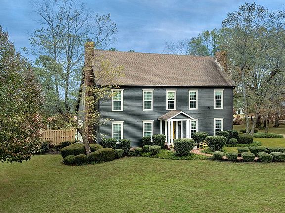 New England architechtural home on 4.95 acres in heart o fWLR, level, easy to maintain, landscaped with 12 station irregation system, custom designed solar powered gated entrance, in-ground gunite pool, patio, gazebo, tennis court, half bath, and inclosed storage in garage. Eat-in kitchen, formal dining, family room, laundry, powder room & master suite down, 4 beds & 2 bath up, 2 WBFP with gas start, loaded with molding, solid wood doors and old world charm.