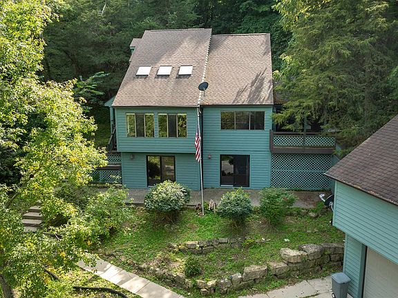 Nestled on an elevated perch at the end of a private cul-de-sac sits this 4 bed, 3 bath Galena Territory hideaway offering a perfect blend of modern updates and natural beauty, scenic outdoor spaces, a serene wooded setting surrounded by lush landscape, new furnace and a/c unit in 2024, and an extra deep and heated detached 3 car garage with shop/storage on main level and full second level workshop/hobby level above. Open and airy main floor features large living room with cathedral ceilings and lots of windows that flood the area with natural light, separate dining area that opens to inviting screened porch with access to sweeping wraparound deck offering beautiful panoramas of the treed ridge beyond, gorgeous updated kitchen with quartz counters, stainless appliances and range hood, farm sink, sleek gray cabinetry, and island with additional prep sink, and spacious primary bedroom that adjoins spa-like full bath with two separate vanities, tile surround shower, and integrated laundry area. Head to the upper level to find two comfortable guest bedrooms both with cathedral ceilings and a nicely appointed full bath shared between. Retreat to the finished walkout lower level that houses a generous family room great for recreation or entertaining that has direct access to front patio, an additional guest bedroom with adjacent full bath that has huge tile surround shower, and a den/office/hobby room allowing some extra space for a multitude of uses. Enjoy the outdoors from the lovely, screened porch or expansive wraparound deck with plenty of room to grill and take in the peaceful surroundings and gorgeous views that also provides breezeway access to second floor of garage. Oversized 3 car garage is heated and has ample room for parking on main level plus additional storage and workshop space, with upper level featuring a massive, heated workshop area that would also work well for more storage, hobby room, or potential future expansion. Central location allows easy access to all amenities of The Galena Territory, including Owners' Club with indoor pool, outdoor pool, fitness facility, game room, multi-sport gym, tennis courts and more, scenic Lake Galena with newly built Marina and Pavilion, and miles of gorgeous paved and unpaved trails. Just minutes from Eagle Ridge Resort & Spa's 63 holes of golf, multiple restaurants, The Country Store, and the newly renovated Stonedrift Spa.