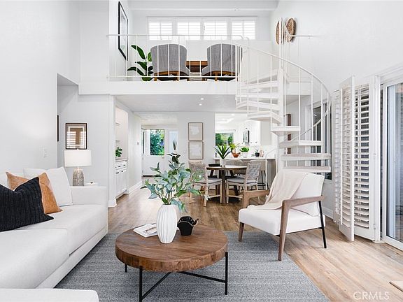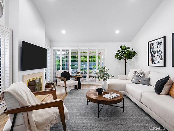 FABULOUS LOCATION, CORNER LOT, UPDATED INTERIOR… This 2 bedroom, 2 bath plus a LOFT home is situated on a 6,900 square foot corner lot within the highly sought after Terrace Community. You will immediately take notice of the long driveway, beautifully landscaped front yard and modern, black Dutch door with classic, gold Baldwin hardware. Natural light fills the home, complete with luxury vinyl floors and crisp white walls. The light and bright kitchen has freshly painted cabinets, new matte black hardware, neutral white countertops, newer stainless steel LG appliances and a Bosch dishwasher. The kitchen also opens to the dining space with a pass through and breakfast bar giving it an “open concept” feel. The living room is complemented by a cozy fireplace, high ceiling, recessed lighting and two sliding glass doors that truly bring the outdoor views in. The approximate 100 square foot Loft has brand new carpet and is ideal for an office or flex space. The Primary Suite offers an exquisitely remodeled bathroom, complete with a timeless marble top dual vanity, marble tiled accent wall and flooring, oversized glamorous mirrors and walk-in closet. A modern, sliding door leads to the elegant walk-in shower with marble tile walls and flooring. Perhaps the most impressive part of this property is the fully enclosed, wrap around lush, green yard. This private oasis has a new fence and offers three separate brick seating areas. With mature Meyer lemon and lime trees, and exquisite landscaping…it truly showcases the pride of ownership and is the ideal outdoor space for enjoying a peaceful morning, entertaining or simply basking in the warm South California sun. The property has a two car garage plus extra parking on the extended driveway. The A/C, furnace and water heater have all been updated. Residents of the Terrace Community can enjoy two swimming pools and spa, tot lots, clubhouse, walking paths, mature trees and wide greenbelts. This University Park home will check all the boxes and is move-in ready!